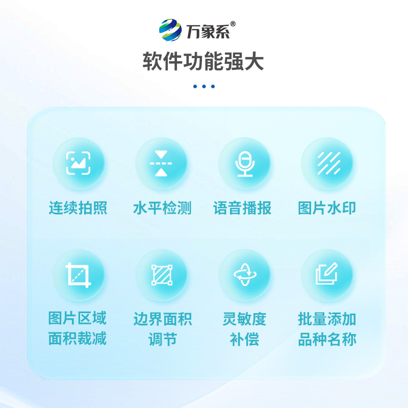 5、軟件功能強大:軟件具有連續(xù)拍照、水平檢測、語音播報、圖片水印、圖片區(qū)域面積裁減、遮擋率、邊界面積調(diào)節(jié)和靈敏度補償、批量添加品種名稱等功能。